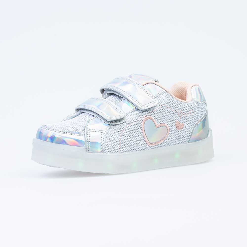 Модель выполнена из комбинированных материалов высокого качества, комбинации искусственной кожи и текстиля.носочная часть и задник дополнительно усилены накладко. Ботинки оснащены мигающими лампочками с яркими светодиодами в подошве. Лампочки включаются датчиком, реагирующим на ударные нагрузки, возникающие при ходьбе. Пара ремешков на застежке велькро надежно фиксируют ножку малыша. Прочная подошва из термоэластопласта не позволит проникнуть холоду внутрь обуви. Актуальная металлизированная расцветка модели универсальна и подойдет практически к любому гардеробу.