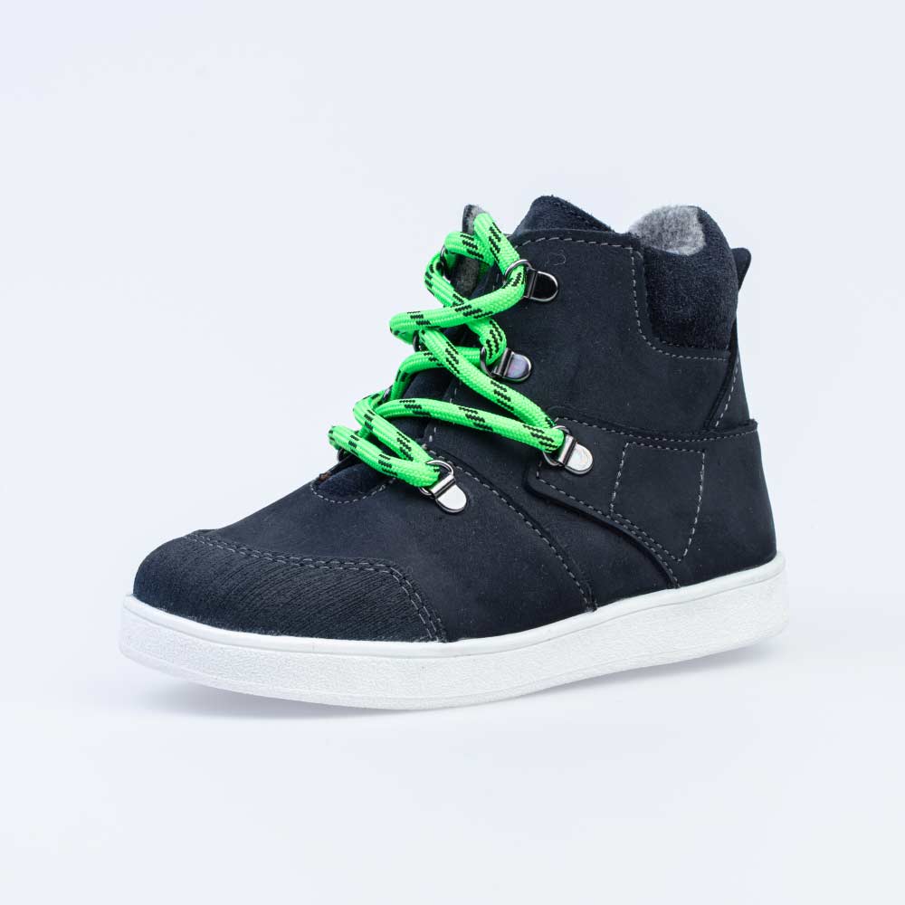 Ботинки выполнены из натурального нубука по своей структуре похожего на замшу. Материал подкладки – шерстяная байка. Дополнительную защиту от осенней прохлады придаёт войлочная стелька, которую можно вытащить для просушки, воспользовавшись специальной петлёй. На ноге модель фиксируется с помощью молнии, при этом полноту можно отрегулировать с помощью шнурков. Прочная подошва из термоэластопласта не позволит проникнуть холоду внутрь обуви.