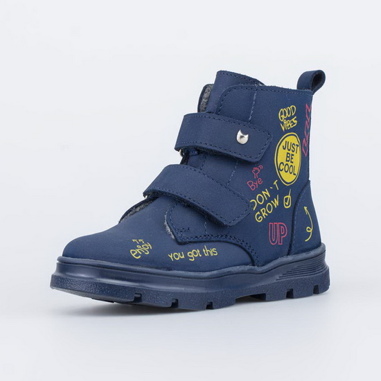 Демисезонные ботинки для мальчика на байковой подкладке синего цвета Верх выполнен из натуральной кожи — износостойкого, гипоаллергенного и дышащего материала. Подкладка и стелька из байки, которые на 80% состоят из натуральной шерсти, хорошо сохраняют тепло. Липучки-велькро позволяют отрегулировать обувь по подъему, а также быстро обуваться и разуваться. Подошва из ТЭП (термоэластопласта) — гибкая и амортизирующая. Модель анатомически правильная: во внутреннем пространстве имеет небольшую приподнятость пяточной части по отношению к носочной, которую незаметно внешне, в меру жёсткий задник и круглый носок. А стелька из натуральной шерсти приформовывается к своду стопы, создавая индивидуальную анатомическую форму внутреннего пространства в обуви, подходящую только вашему ребенку. Это положительно влияет на правильное развитие стоп и всего опорно-двигательного аппарата. Сделано в России.