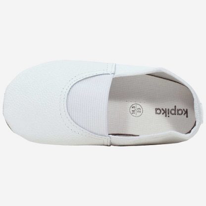 Кожаные чешки – классика обуви для занятий в школе и детском саду. Благодаря натуральным материалам верха и стельки обеспечивается правильная терморегуляция, подошва из искусственной кожи не будет скользить. Доступны в белом и черном цветовых решениях.