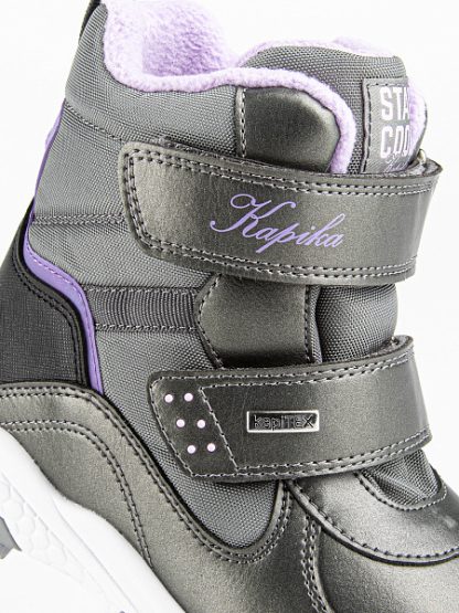 Зимние ботинки с мембраной для девочки – надежная защита от холода и влаги. Подошва, состоящая из материалов ЭВА и ТЭПа, обеспечивает легкость и, при этом, предотвращает скольжение. Модель оснащена теплой стелькой с фольгой, которая уберегает от охлаждения и обеспечивает сохранение тепла в течение длительного времени. Купить мембранные ботинки Kapika легко- необходимо всего лишь оформить заказ в фирменном интернет магазине.
