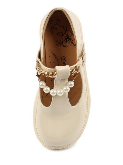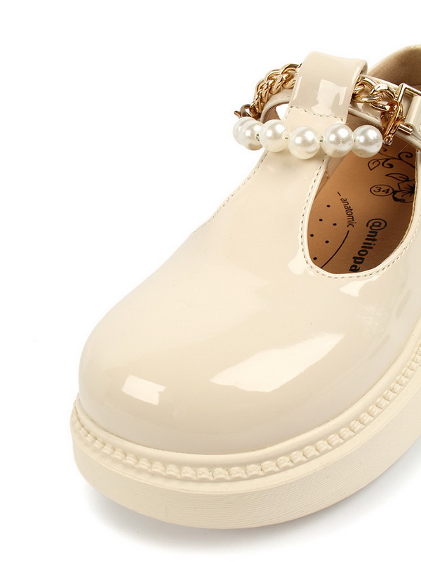 Великолепные туфли от бренда Antilopa созданы специально для юных модниц. Модель выполнена из лакированной экокожи бежевого цвета и удобно фиксируется на застежку. Кожаная подкладка и стелька подарят комфорт детским ножкам во время носки.