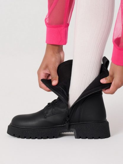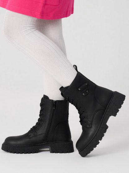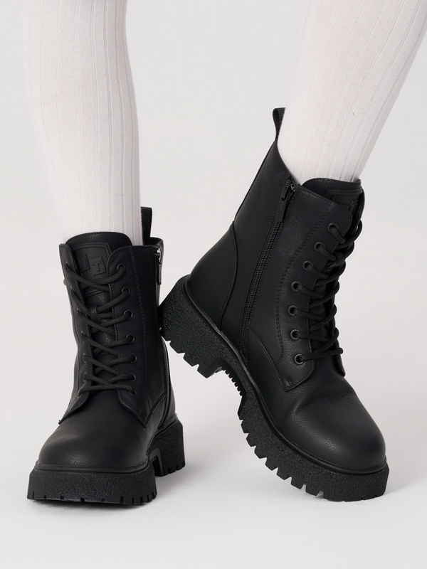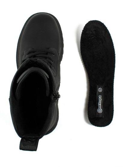 Стильные высокие ботинки от бренда Antilopa созданы специально для юных модниц. Модель выполнена из экокожи черного цвета и удобно фиксируется на шнуровку и боковую молнию. Подкладка и стелька из утепленного баечного текстиля подарят комфорт и тепло детским ножкам в прохладное время года.