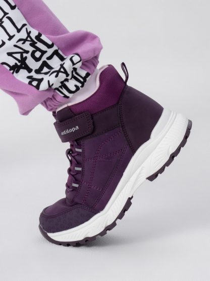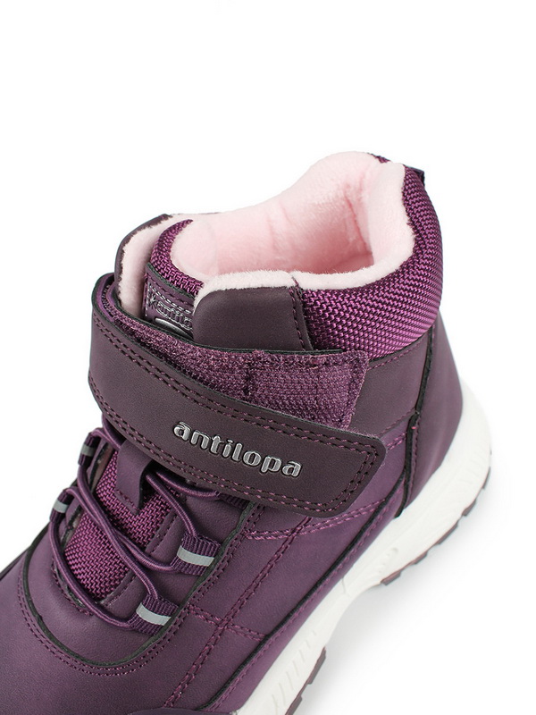 Великолепные ботинки от бренда Antilopa – обязательный элемент демисезонного гардероба ребенка. Модель выполнена из искусственного нубука фиолетового цвета и удобно фиксируется на липучку. Подкладка и стелька из утепленного баечного текстиля и обеспечат комфорт и тепло детским ножкам в прохладное время года.