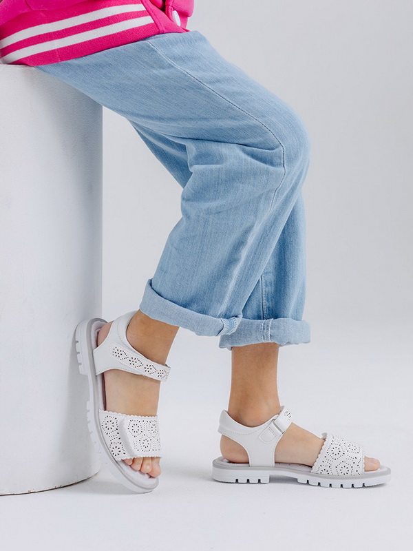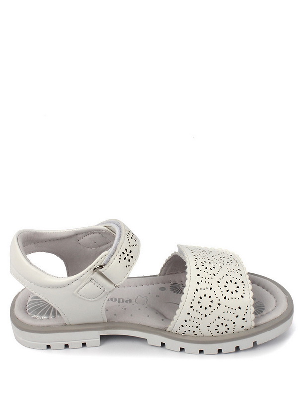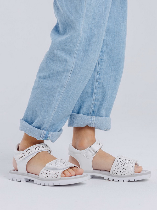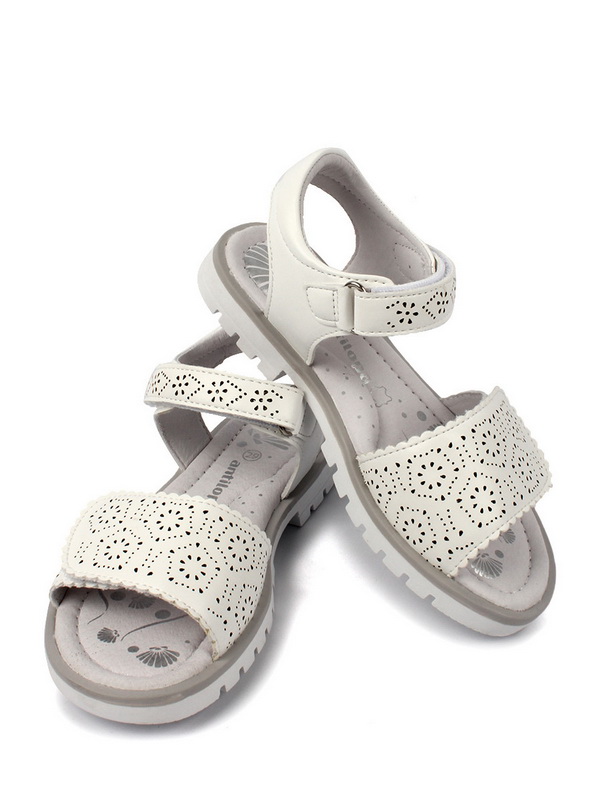 Сандалии для девочки с комбинированным материалом верха. Подкладка и стелька из натуральной кожи. Жесткий задник и подсводник обеспечивают правильную постановку стопы и комфорт. Долговечная ТЭП подошва продлевает срок службы обуви.